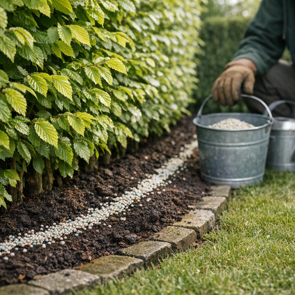 1 januari 2025 6 min 5880 Senast uppdaterad 15 februari 2026 by Therese Hermansson Innehållsförteckning Snabb rekommendation: så väljer du rätt gödsel nuNär ska man gödsla häckarRekommendationer per häcktypThuja och taxusLigusterAvenbok och bokhäckAronia, häggmispel och oxbärSå gödslar du steg för stegVanliga misstag att undvikaVanliga frågorVad ska man gödsla häcken med?Vilken gödsel till häckoxbär?Vad gödslar man ligusterhäck med? Snabb rekommendation: så väljer du rätt gödsel nu Nyplanterad häck: undvik starka kvävegivor direkt. Blanda in lite välbrunnen kompost eller kogödsel lätt i översta jordlagret och börja med mild organisk näring 4–6 veckor efter plantering. Etablerad bladfällande häck (avenbok, bokhäck, häggmispel, aronia): använd naturgödsel eller en balanserad NPK 8–3–10 till 12–5–14 i april och en mindre komplettering i juni. Avsluta i god tid före hösten. Vintergrön häck (thuja, taxus, liguster): ge en kvävebetonad giva i april–maj och en balanserad uppföljning i juni–juli. Undvik kväverik gödsel efter augusti. Häck i kruka eller torra lägen: flytande gödsel till häck varannan vecka maj–juli fungerar bra, alternativt flytande gödning häck i låg dos varje vecka. pH och jord: de flesta häckväxter trivs vid pH 6–7. Vid sur jord kan försiktig kalkning vara motiverad, men undvik kalk till arter som vill ha svagt sur jord. Jordförbättra årligen med kompost för bättre struktur och vattenhållning. Läs mer i artikeln perfekt planteringsjord till häck. När ska man gödsla häckar Vår – huvudgivan: börja när jorden är tjälfri och knoppar sväller, vanligtvis april till tidig maj. Då har häcken störst behov av kväve för skottstart och bladverk. Organisk gödsel frigörs långsamt med värme och fukt, vilket gör våren optimal. Försommar/sommar – komplettering: en mindre giva i juni eller tidig juli stabiliserar tillväxten. För snabbväxande häckar kan du lägga till en extra lätt giva i slutet av juli om säsongen är lång och du vattnar regelbundet. För detaljer om sommarens rutiner, se sommarskötsel: när och hur du gödslar. Sensommar/höst – var försiktig: undvik kväverik gödsel från augusti så att skott hinner avmogna inför vintern. Vid behov kan en kaliumbetonad höstgödsel häck i augusti förbättra vinterhärdigheten, särskilt i mildare lägen. I kallare zoner räcker oftast vår och försommar. Anpassa alltid efter väder: gödsla aldrig i torrperiod utan bevattning och undvik frostnätter i direkt anslutning till gödsling. För en samlad översikt över tider och rutiner, se våra skötselråd för häckar. Rekommendationer per häcktyp Olika häckar har snarlika grundbehov men svarar lite olika på kväve och timing. Följ doseringen på säcken och anpassa efter jord, klimat och plantans ålder. Thuja och taxus Gödsel thuja häck och taxus bör vara jämnverkande och inte för stark på en gång. Ge naturgödsel häck eller en balanserad NPK-gödsel 10–5–15 i april–maj, följt av en mindre giva i juni. Undvik sena kvävegivor. Vid torra perioder fungerar flytande gödning häck i låg dos bra, men vattna alltid före och efter. Gödsel till thuja häck ska främja tät grön massa och starka rötter utan att driva mjuka höstskott. Liguster Gödsel liguster häck kan vara något kvävebetonad på våren, till exempel NPK 12–5–14, med en lätt uppföljning i juni. Liguster är tålig men svarar tydligt på jämn näring och fukt. I kruka eller vid nyplantering kör du mild organisk näring och små men regelbundna givor. Undvik stora givor sent på säsongen så håller häcken sig kompakt och vintertålig. Avenbok och bokhäck Avenbok häck gödsel och bokhäck gödsel bör vara måttlig i kväve för att ge stabil, tät tillväxt. Satsa på naturgödsel eller en balanserad NPK 8–3–10 i april och en mindre giva i juni. Gödsel till bokhäck ska inte driva lång, mjuk sommartillväxt som riskerar vinterskador. Jordförbättra gärna årligen med kompost för att bevara fukt och minska behovet av extra näring. Aronia, häggmispel och oxbär Aronia häck gödsel och häggmispel häck gödsel får gärna vara balanserad med inte alltför högt kväve, eftersom för mycket kväve kan minska blom och bär. En mild trädgårdsgödsel i april och en liten komplettering i juni räcker oftast. För häckoxbär fungerar naturgödsel och en lätt NPK 10–5–15 väl. Håll jorden jämnt fuktig efter gödsling för att undvika brännskador och ojämn upptagning. Så gödslar du steg för steg 1) Kontrollera jorden: ta bort ogräs och löst skräp. Vid mycket kompakt jord, mylla in lite kompost i ytan för bättre struktur. 2) Vattna före: lätt fuktig jord minskar risken för rotskador och hjälper näringen att spridas jämnt. 3) Dosera rätt: sprid gödseln i droppzonen längs båda sidor av raden, inte tätt mot stammen. Följ alltid produktens dosering och börja hellre försiktigt. 4) Mylla lätt: kratta eller mylla ner gödseln ytligt för att minska avdunstning och näringsförluster. 5) Vattna efter: en grundlig vattning aktiverar näringen och minskar risken för bränna på rötter. 6) Upprepa vid behov: gör en mindre komplettering i juni–juli för snabbväxande häckar. Pausa kväve efter augusti. För fördjupning, se gödsla och jord till snabbväxande häck. Vanliga misstag att undvika Övergödning och för sena givor leder till mjuka skott som fryser tillbaka. Håll dig till två lätta givor per säsong och avsluta kväve i god tid före hösten. Fel produktval kan ge obalanserad tillväxt. En ren kväveprodukt driver blad men försvagar rötter. Välj hellre en jämnverkande trädgårdsgödsel eller naturgödsel med N, P och K. Att strö gödsel på torra blad eller mot stammen kan ge brännskador. Sprid i jorden, mylla lätt och vattna före och efter. Glöm inte jordförbättring – organisk materia gör gödslingen effektiv